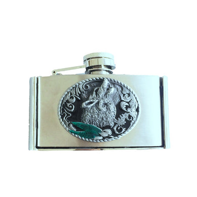Gürtelschnalle Buckle mit Taschenflasche Flachmann Heulender Wolf