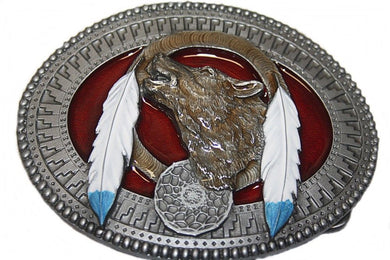 Gürtelschnalle Buckle f. Wechselgürtel Lizensiert Tanside Wolf Feder Traumfänger