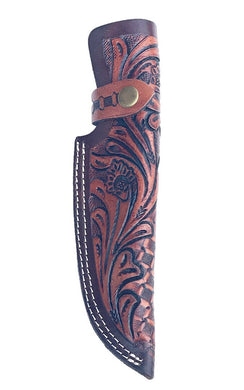 Messertasche Leder Ledermesserscheide, Braun, Vintage-Prägung mit Gürtelschlaufe